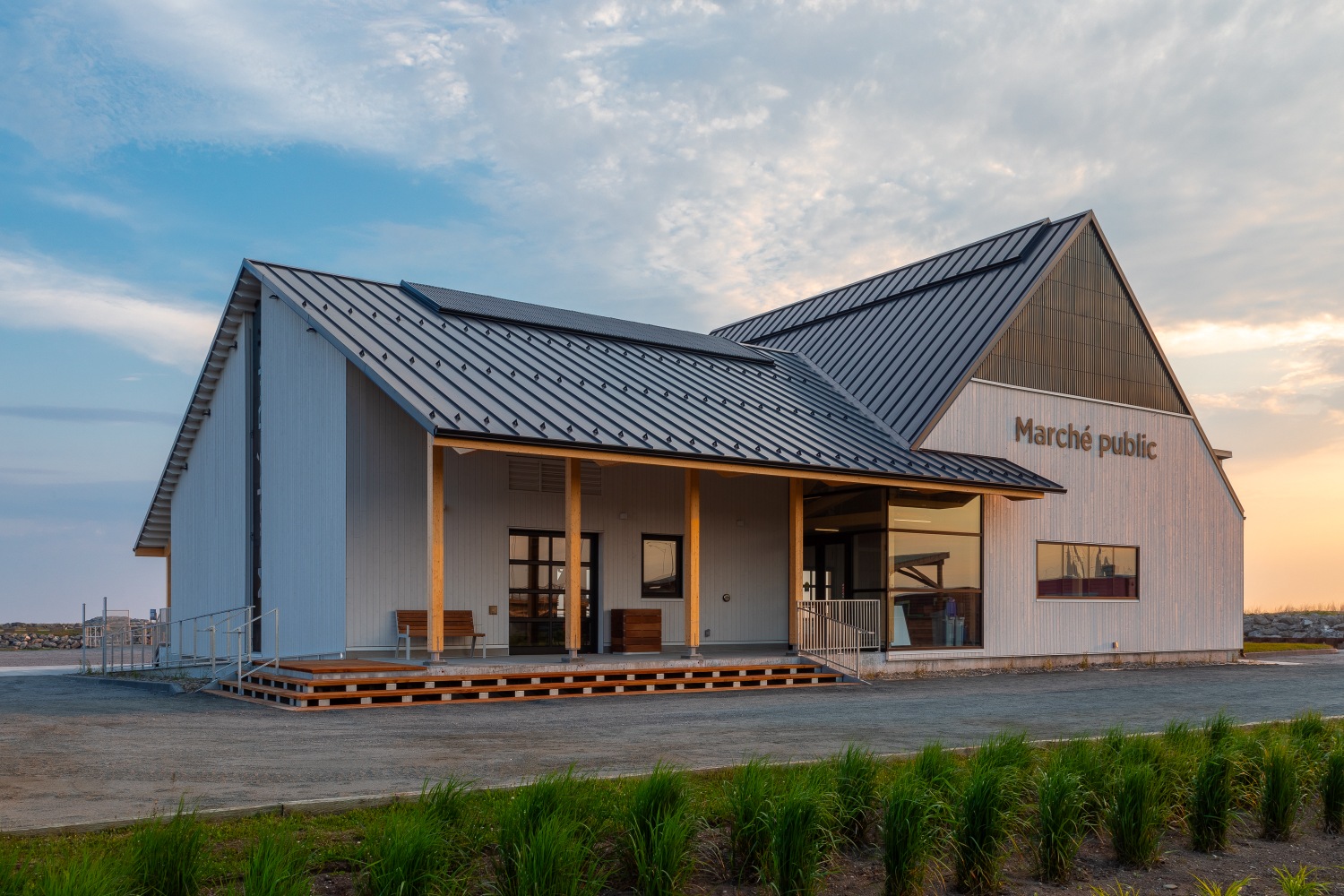 La typographie choisie reflète celle du bâtiment, et sa composition s'inspire de l’ancien logo, dans un esprit de continuité, en reconnaissance de l’énergie et la ténacité déployées par les marchands au fil des années. Les couleurs choisies incarnent la nature et la chaleur, un clin d’œil à l’ambiance estivale du Marché public de La Matanie et à la chaleur humaine qui y règnera.